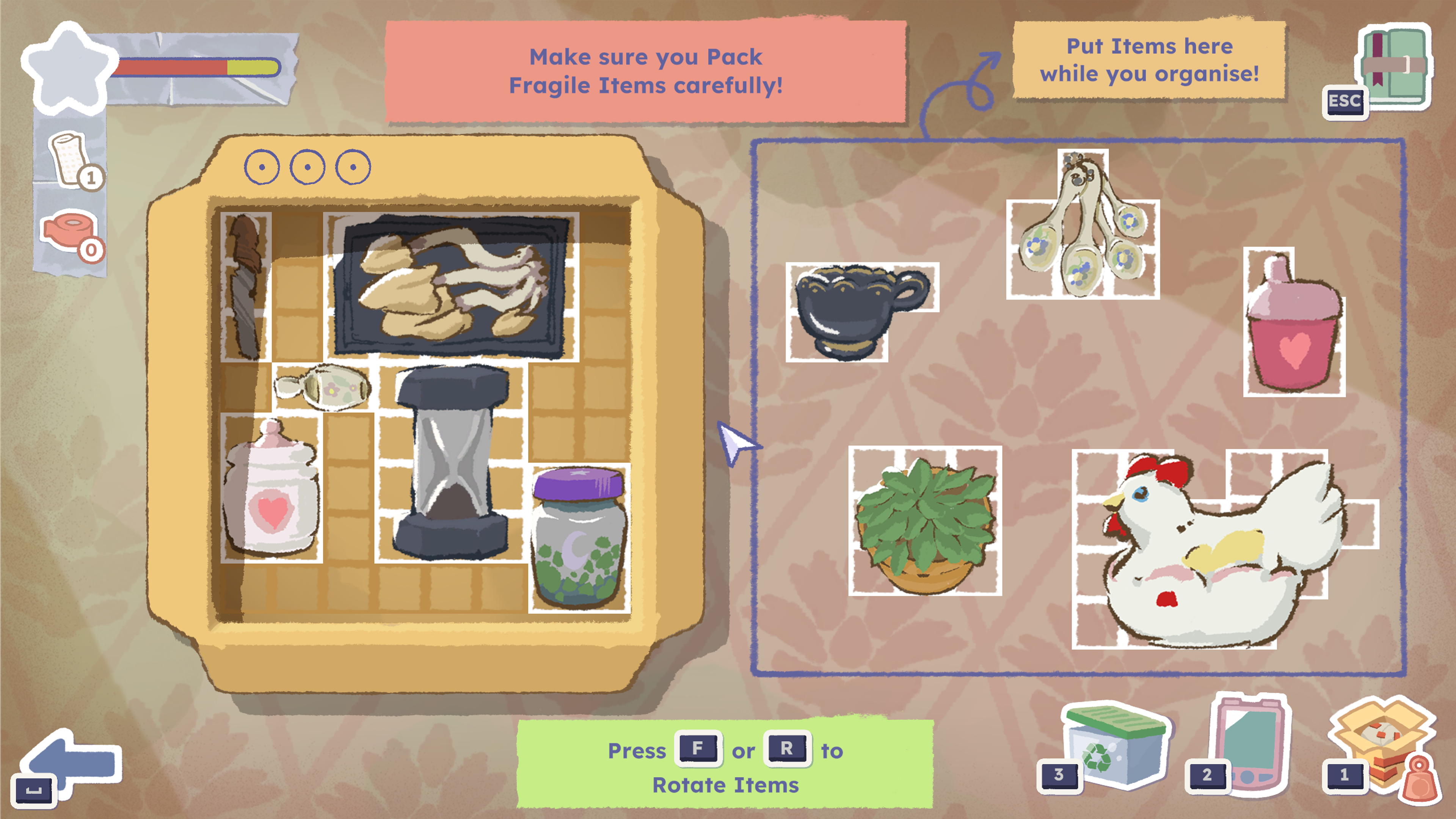 Explore the house room by room and decide what you’ll keep, what should be sold, and what can be recycled. Move furniture and search through cupboards and drawers to find tucked-away items which may hold more intriguing memories. You only have one cardboard box for keepsakes per room, so prepare for difficult decisions as you choose which elements of Tabitha’s life you want to remember.